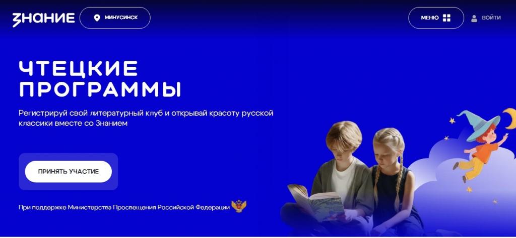 Министерство просвещения Российской Федерации и Российское общество «Знание» совместно с Советом при Президенте Российской Федерации по реализации государственной политики в сфере поддержки русского языка и языков народов Российской Федерации реализует Всероссийскую программу по развитию художественного чтения и популяризации русской литературы «Чтецкие программы»